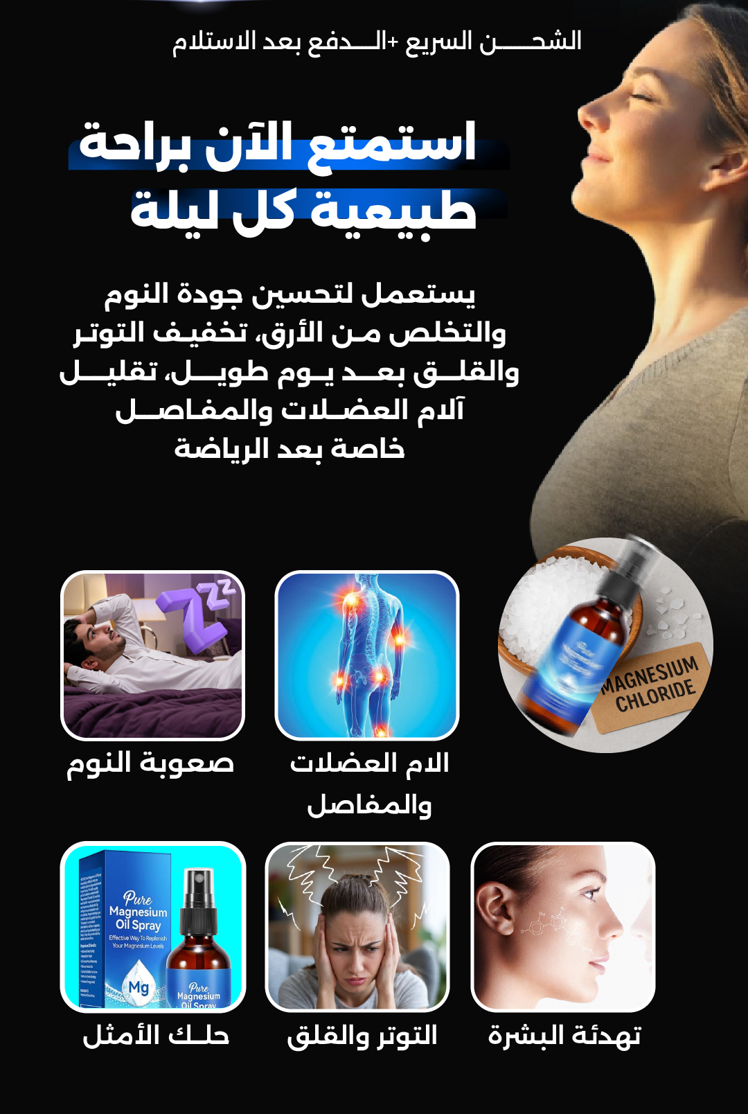 بخاخ زيت المغنيسيوم العضوي النقي للاسترخاء والنوم العميق